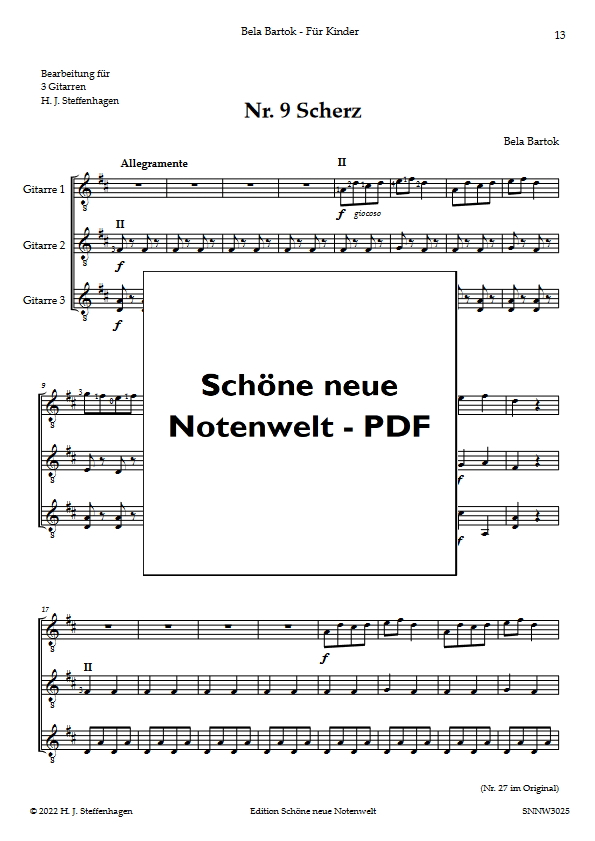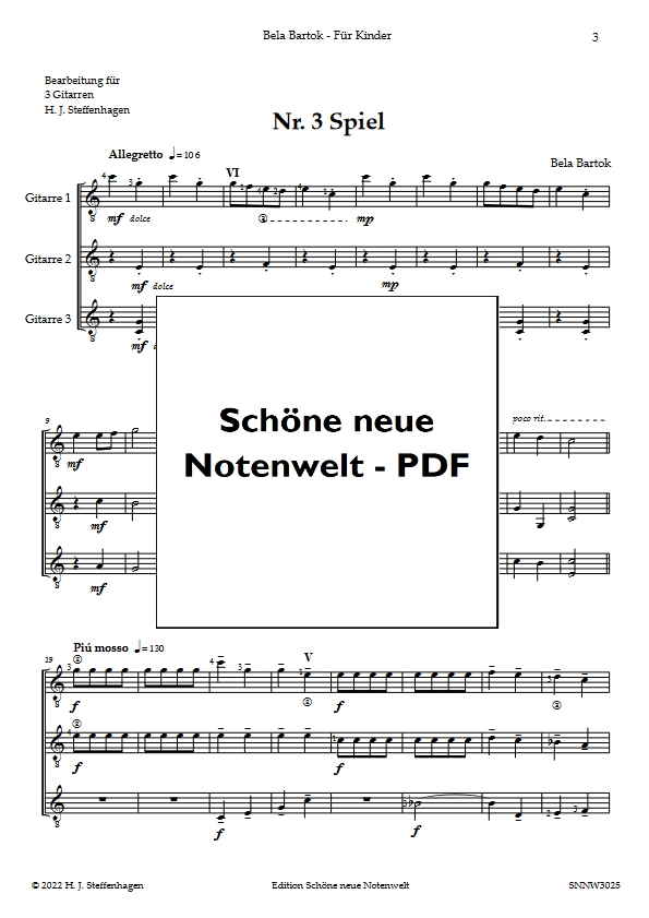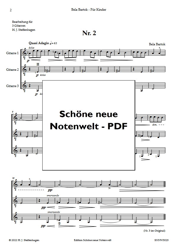 Bela Bartok - Für Kinder (3 Gitarren) - pdf