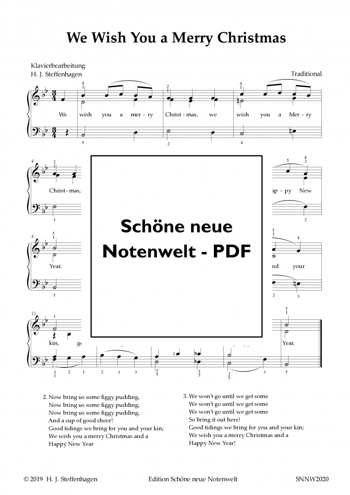 Eines der bekanntesten Christmas Carols (Weihnachtslieder) aus England in einer leicht spielbaren Fassung für Klavier allein. Mit Fingersätzen und Text.